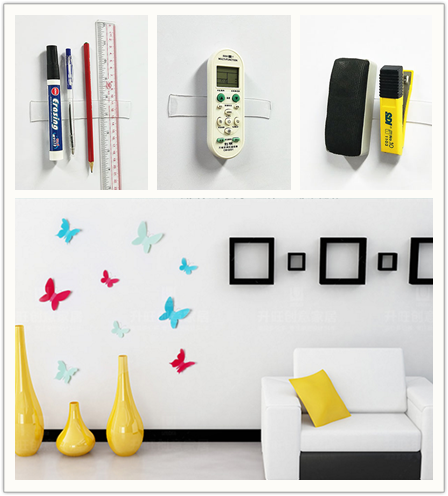 PU材質(zhì)的無痕雙面膠:可水洗,長期不留膠痕,重復(fù)使用,水洗不減粘力,環(huán)??沙隹冢瑑r格貴。